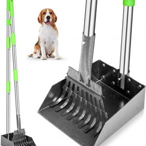 TOOGE Pooper Scooper, Dog Pooper Scooper Long Handle Stainless Metal Tray and Rake