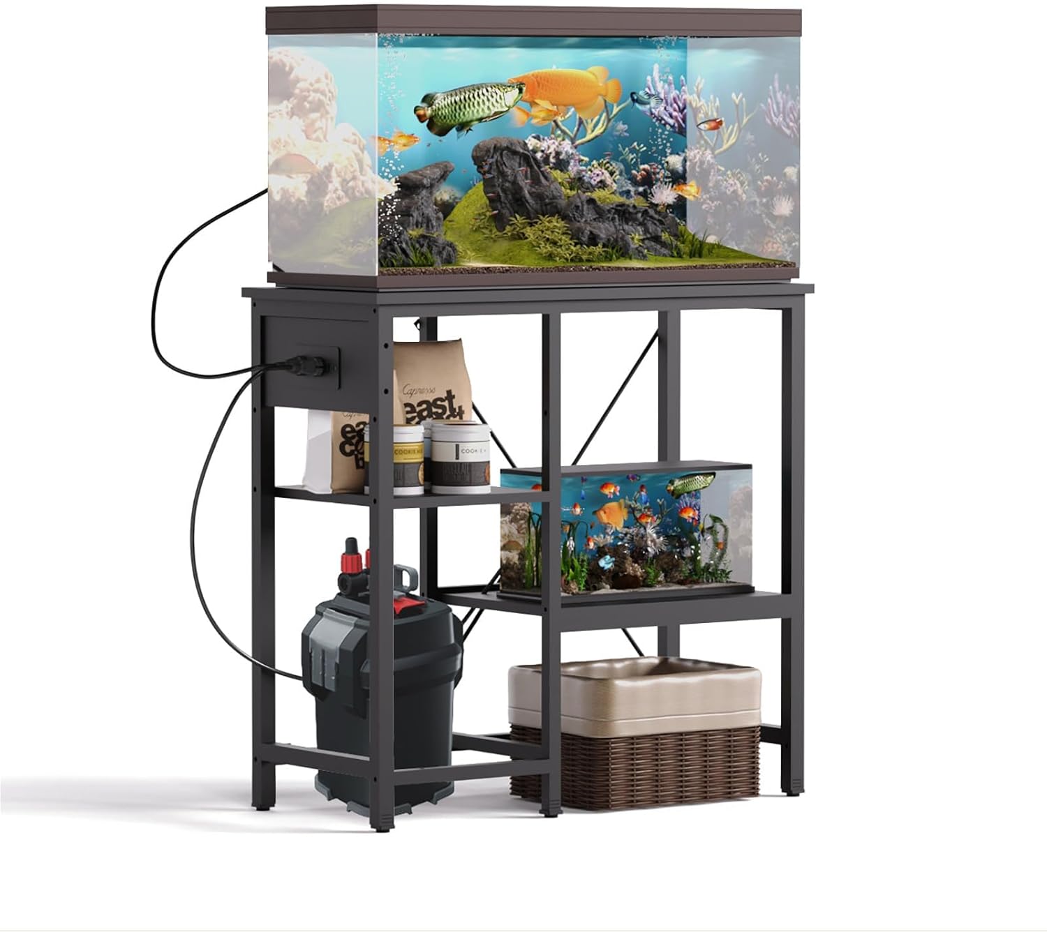 This great Adjustable Aquarium Stand 20-29 Gallon Fish Tank Stand has Power Outlet & LED Light, Tank Stand for Reptile Tank, Turtle Tank, 30.7″ L*13.8″ W, Black. This 20 gallon fish tank stand has an adjustable design and can be assembled in three shapes depending on your needs. Metal Aquarium Stand with 3 Tier Adjustable Storage Shelves